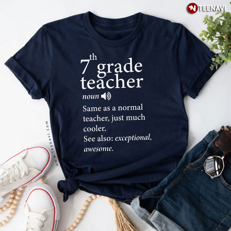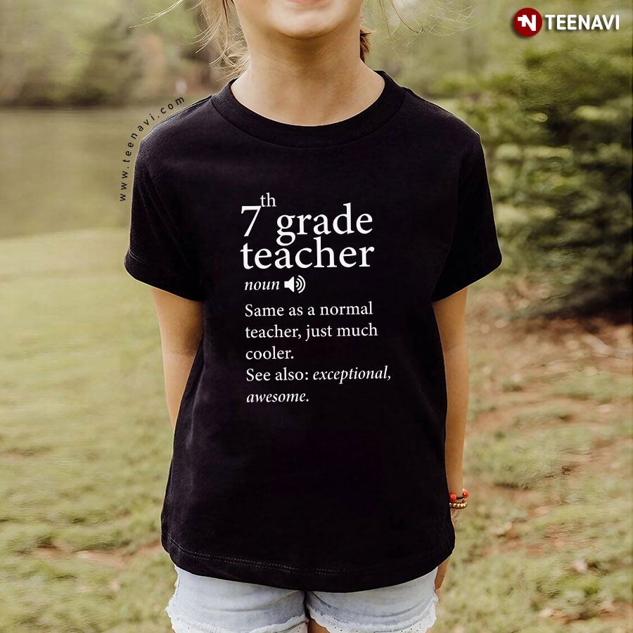 Let’s dive into the specifics of the 7th Grade Teacher Same As A Normal Teacher Just Much Cooler Back To School T-Shirt below for more information: