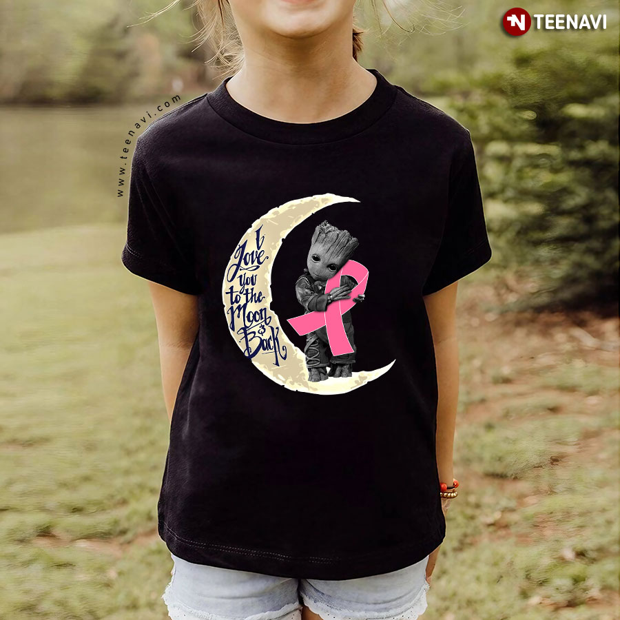 Details about the Baby Groot Hugging Breast Cancer Ribbon I Love You To The Moon And Back T-Shirt