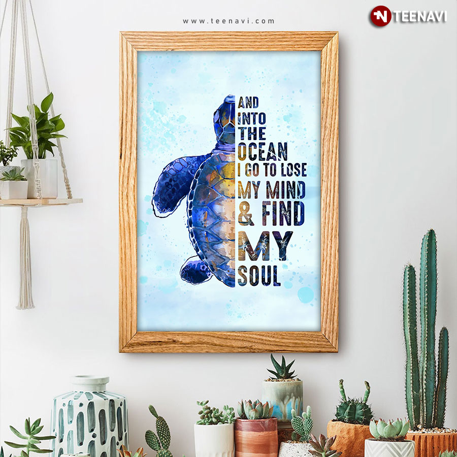 Let’s dive into the specifics of the Beautiful Sea Turtle And Into The Ocean I Go To Lose My Mind & Find My Soul Poster below for more information: