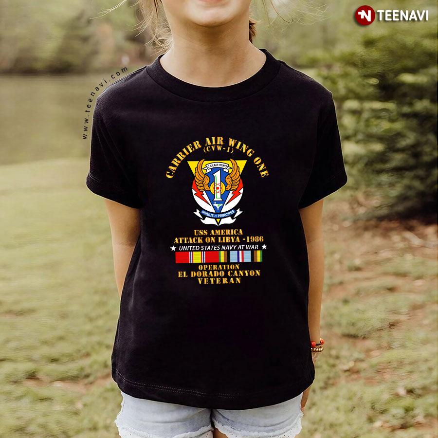 Let’s dive into the specifics of the Carrier Air Wing CVW-1 North USS America United States Navy Operation El Dorado Canyon Veteran T-Shirt below for more information: