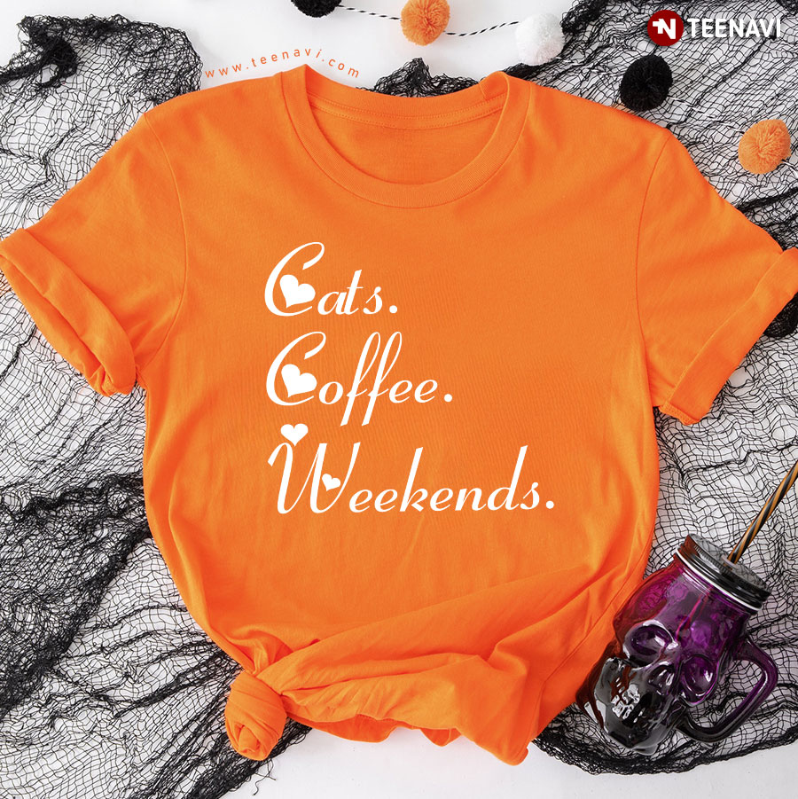 Let’s dive into the specifics of the Cats Coffee Weekends My Favorite Things T-Shirt below for more information: