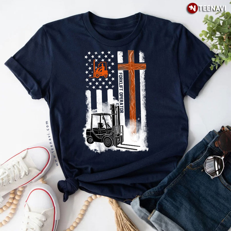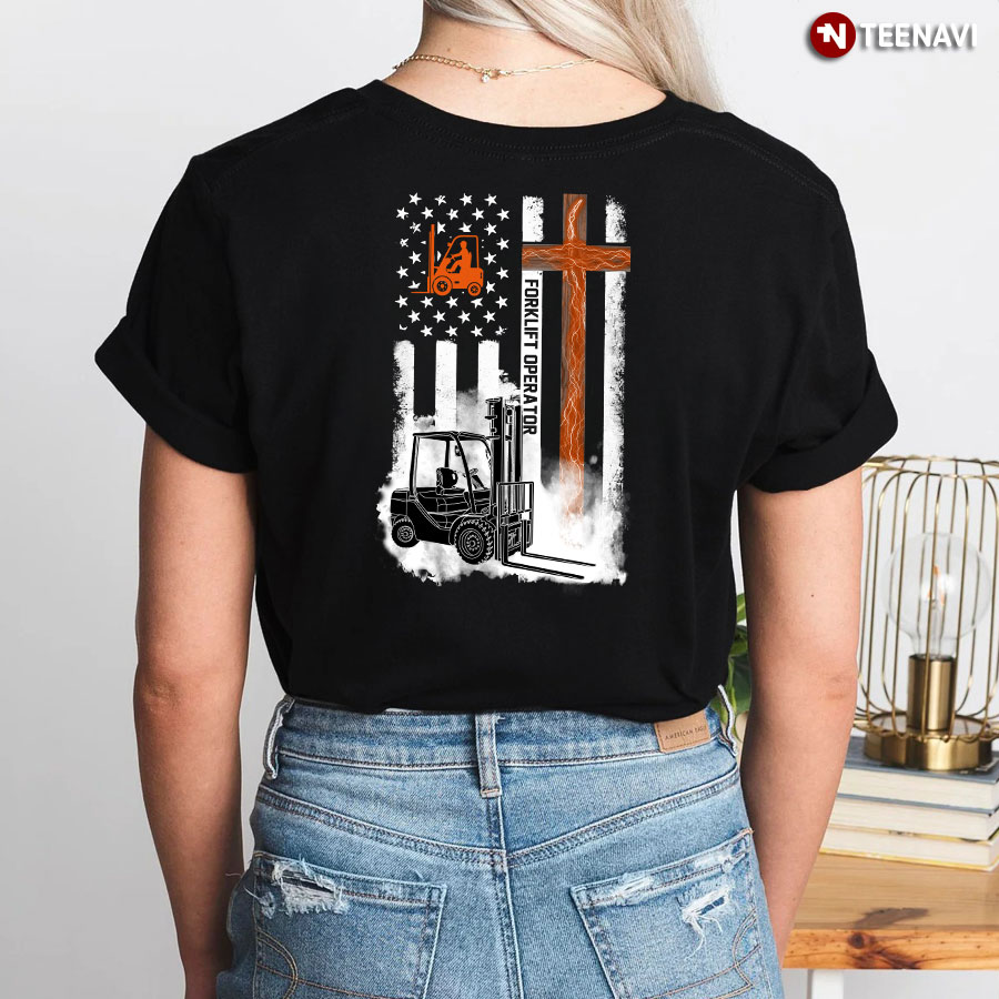 Christian Forklift Operator Shirt, Forklift Operator American Flag Cross T-Shirt