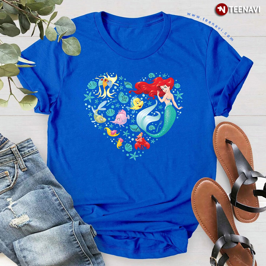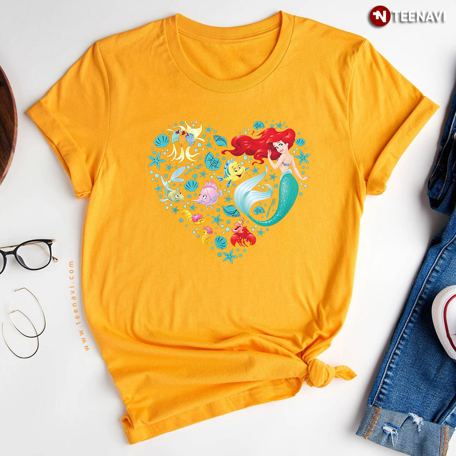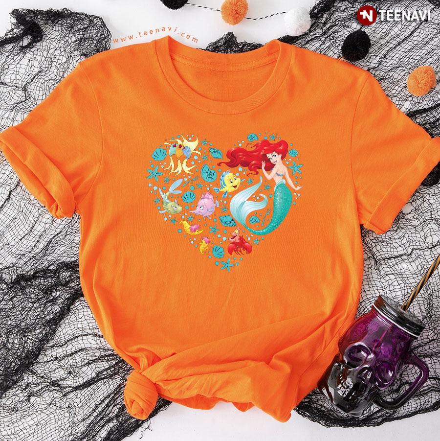Disney Princess Ariel Flounder and Sebastian Marine Heart for Girl T-Shirt