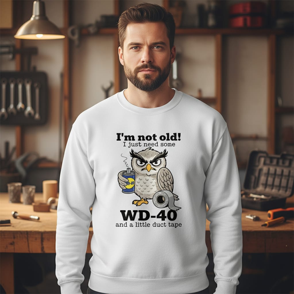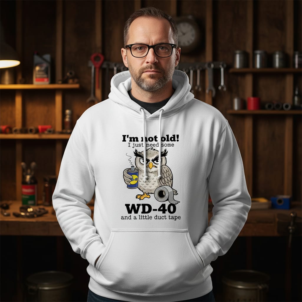 Delivered!Embrace your inner wise (and slightly creaky) elder with this hilarious TeeNavi tee. Perfect for anyone who feels a bit “stiff in the joints,” this design features a grumpy owl ready to tackle aging with the ultimate toolkit: WD-40 and duct tape. Whether you’re a DIY expert or just enjoy a good laugh about getting older, this witty graphic captures that classic “fix-it” spirit. It’s a fantastic gift for the grandfather, dad, or retired hobbyist in your life who knows that a little lubricant and tape can solve almost anything. Show off your seasoned personality and let everyone know you’re not old—just in need of a quick tune-up!
