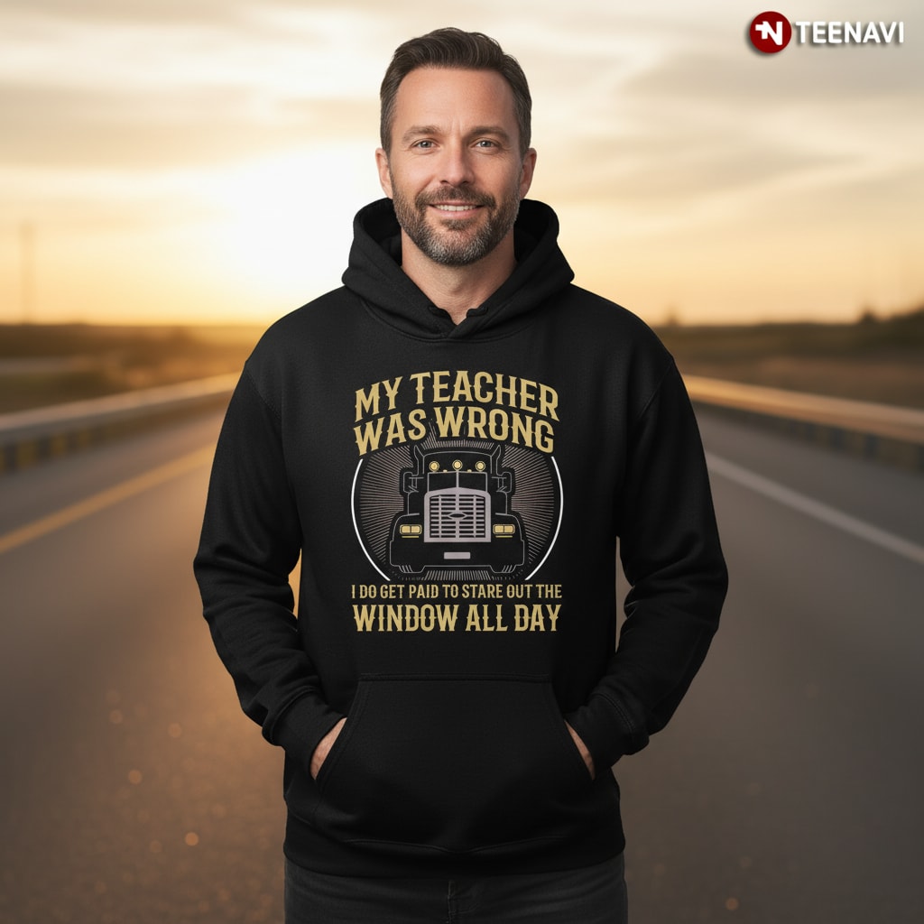 Let’s dive into the specifics of the Funny My Teacher Was Wrong Truck Driver Stare Out Window T-Shirt below for more information: