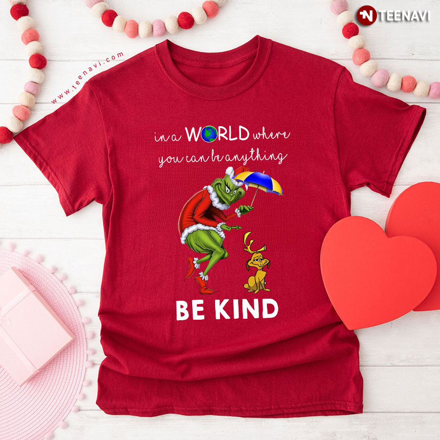 Let’s dive into the specifics of the Grinch And Max In A World Where You Can Be Anything Be Kind T-Shirt below for more information: