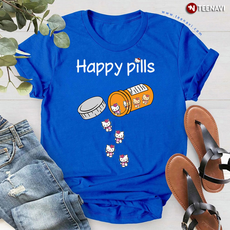 Let’s dive into the specifics of the Hello Kitty is Happy Pills T-Shirt below for more information: