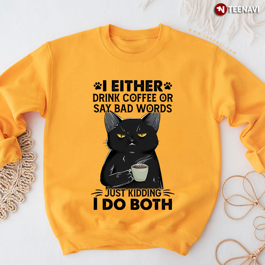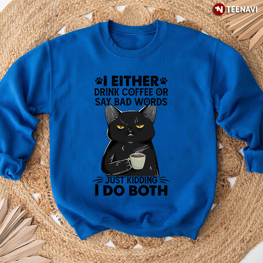 I Either Drink Coffee Or Say Bad Words Just Kidding I Do Both Black Cat Sweatshirt
