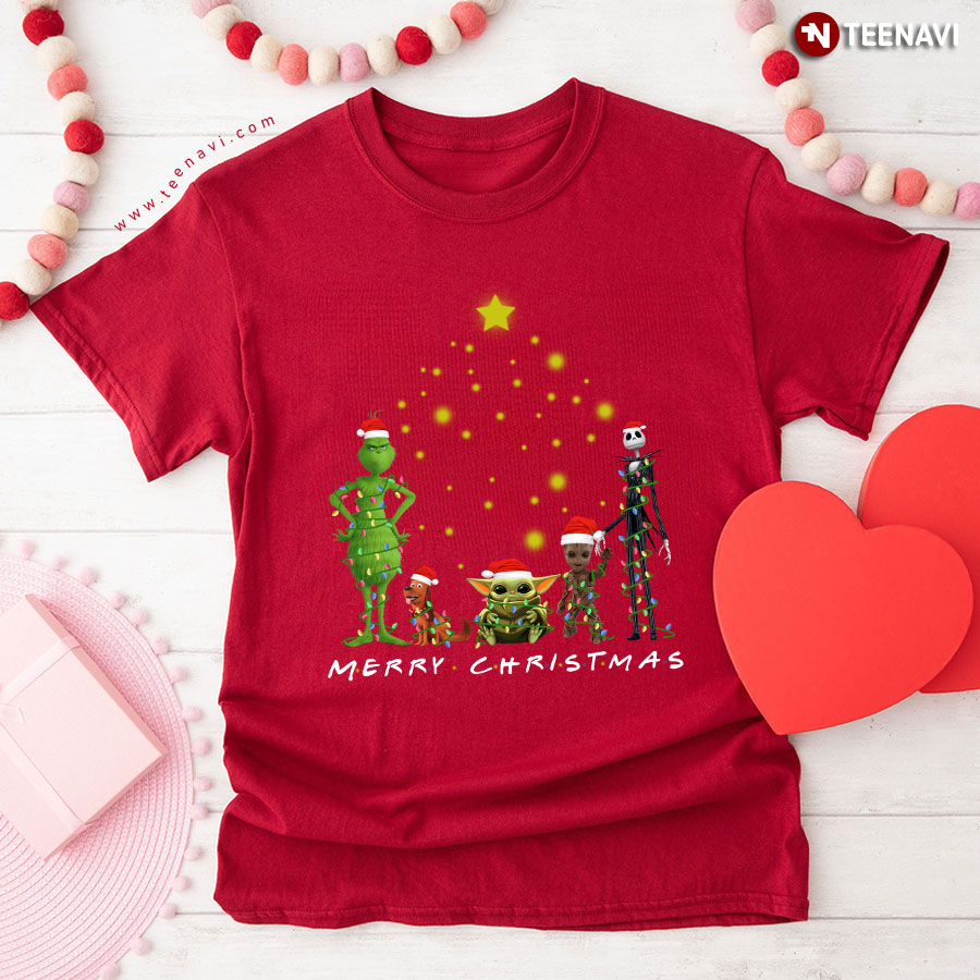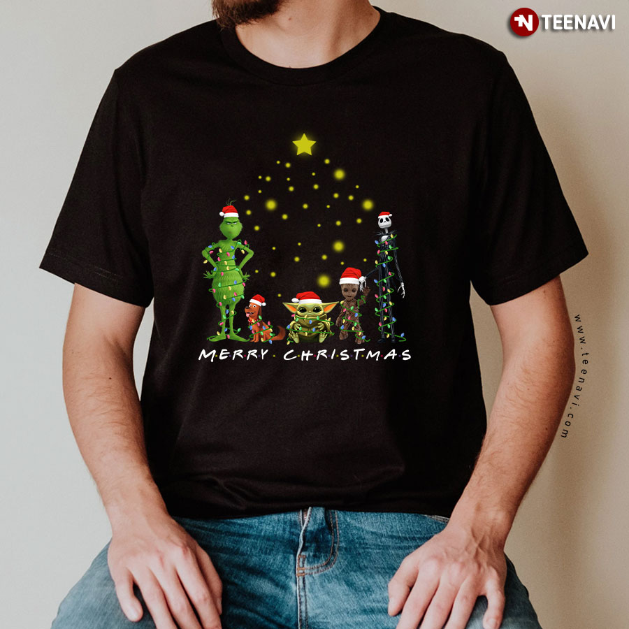 Merry Christmas Grinch Max Baby Yoda Groot Jack Skellington T-Shirt