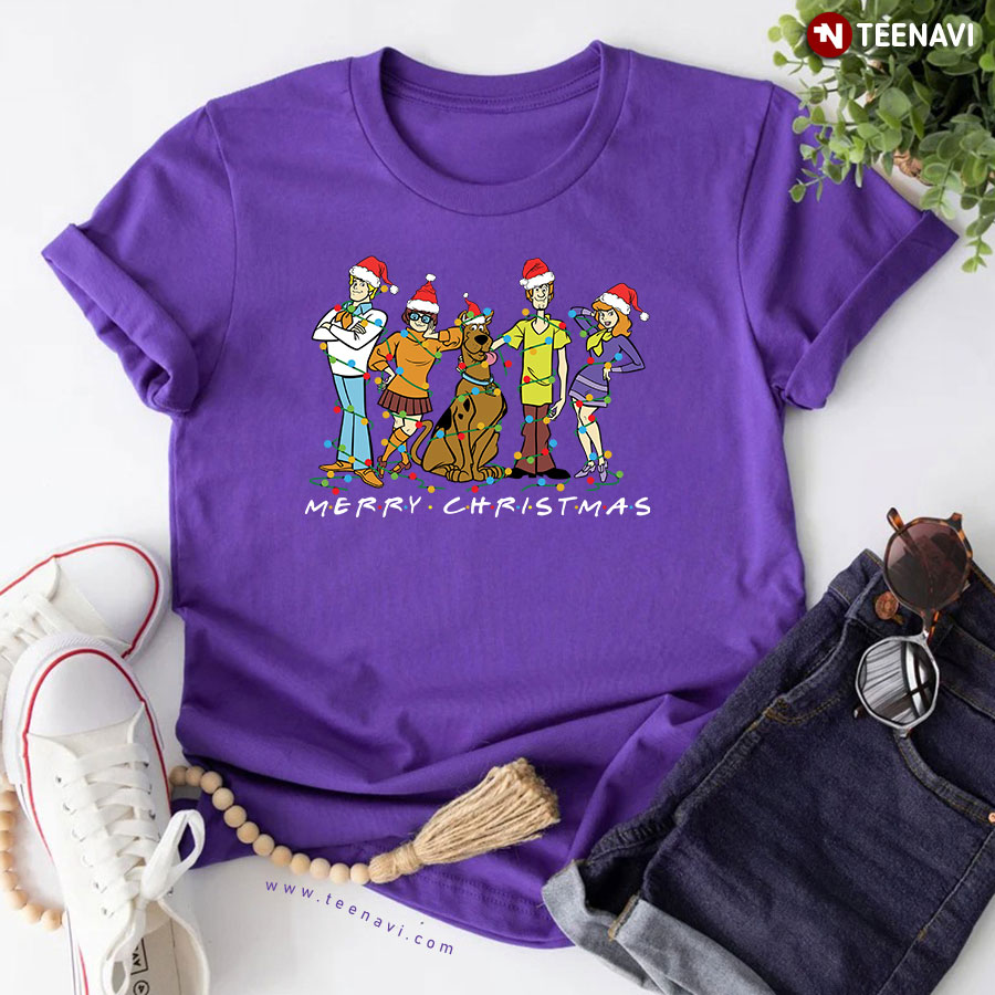 Delivered!Celebrate the festive season with a touch of nostalgia in the TeeNavi “Merry Christmas Scooby-Doo Cartoon For Cartoon Lover Christmas Gifts T-Shirt.” This vibrant tee features the beloved Scooby-Doo gang decked out in Santa hats, blending holiday cheer with classic adventure. Fred, Velma, Scooby, Shaggy, and Daphne stand shoulder to shoulder, each wrapped in colorful Christmas lights, embodying the spirit of joy and camaraderie. The phrase “Merry Christmas” in playful font beneath them adds a festive flair. Ideal for cartoon lovers, this TeeNavi t-shirt is a fun and whimsical gift choice, perfectly capturing the magic of the holiday season. Embrace the joy with TeeNavi, where classic cartoons meet festive fun!