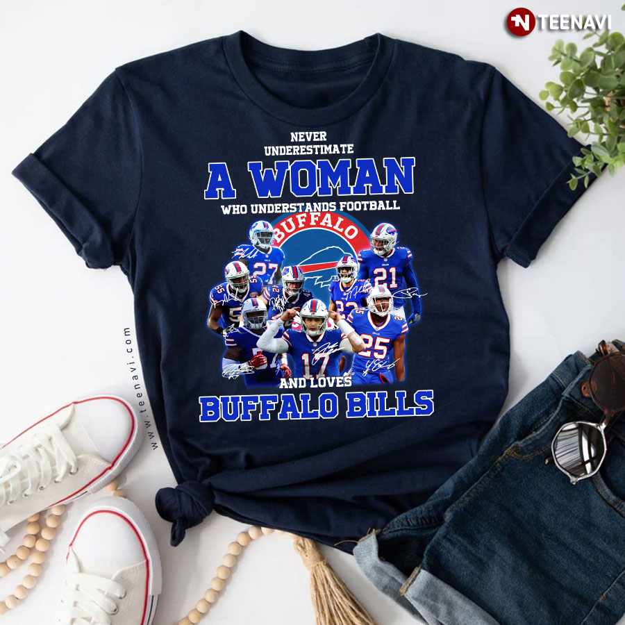 Let’s dive into the specifics of the Never Underestimate A Woman Who Understands Football And Loves Buffalo Bills T-Shirt below for more information:
