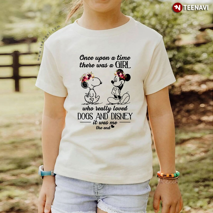 Let’s dive into the specifics of the Once Upon A Time There Was A Girl Who Really Loved Dogs And Disney It Was Me The End Snoopy T-Shirt below for more information: