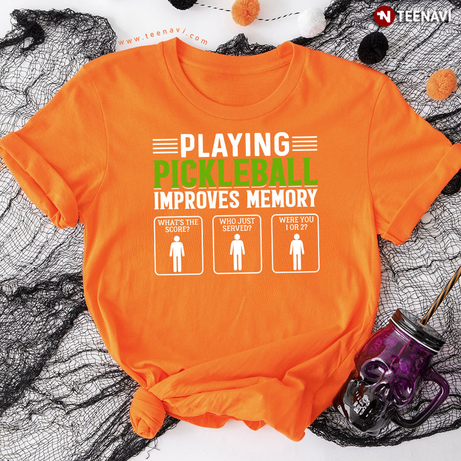 Let’s dive into the specifics of the Playing Pickleball Improves Memory T-Shirt below for more information: