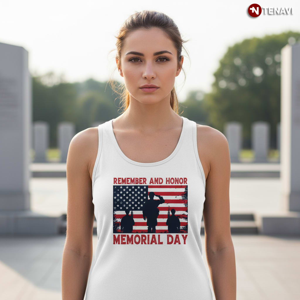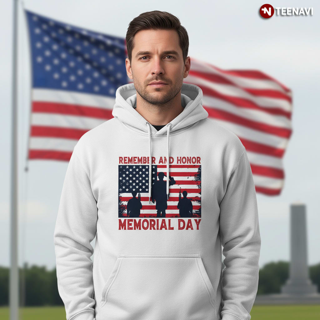 Let’s dive into the specifics of the Remember and Honor Memorial Day American Flag Soldier T-Shirt below for more information: