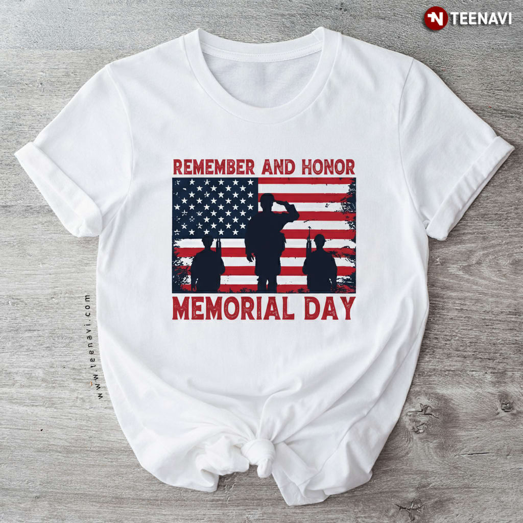 Remember and Honor Memorial Day American Flag Soldier T-Shirt