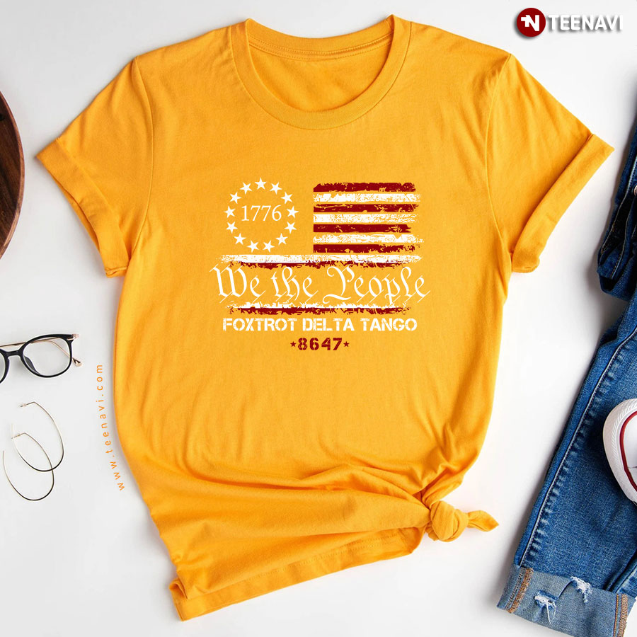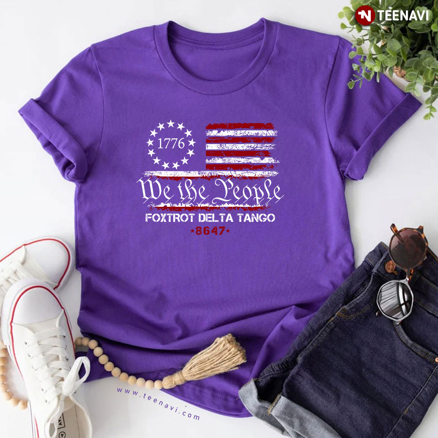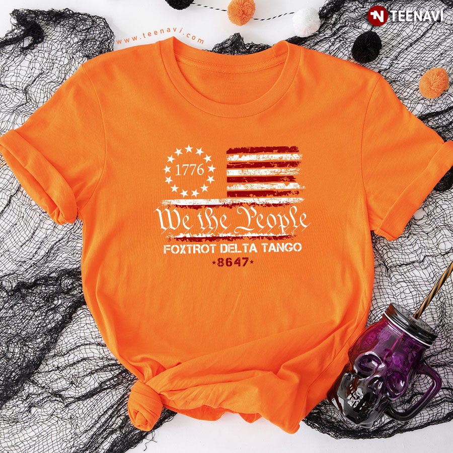 Delivered!Introducing the TeeNavi “Resist 8647 Foxtrot Delta Tango T-Shirt,” a bold statement piece capturing the spirit of resistance. The design features a distressed American flag motif with the year “1776” encircled by thirteen stars, epitomizing foundational history. Below, the iconic words “We the People” are scripted in a classic font, reinforcing unity and strength. The phrases “Foxtrot Delta Tango” and “8647” add a layer of mystery and intrigue. Crafted on a sleek black canvas, this TeeNavi shirt blends patriotism with contemporary style—perfect for those who wear their ideals with pride.