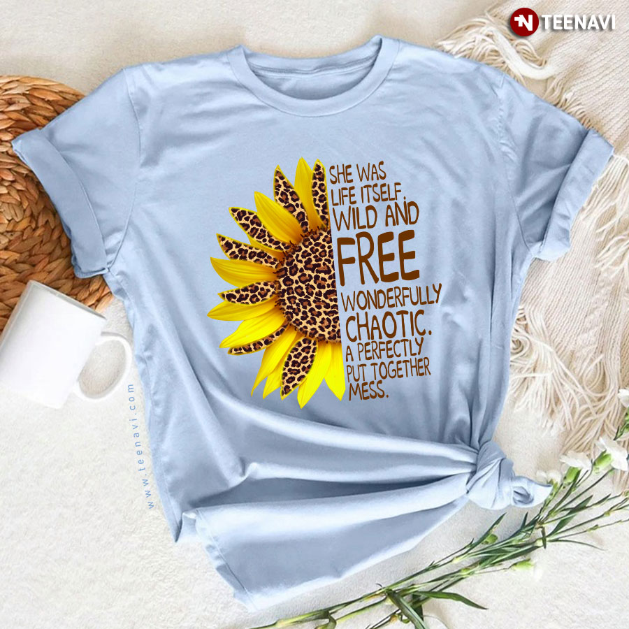 She Was Life Itself Wild And Free Wonderfully Chaotic A Perfectly Put Together Mess Sunflower T-Shirt