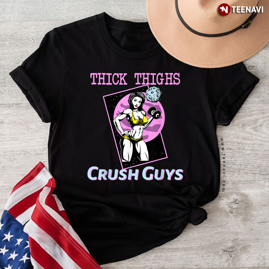 Let’s dive into the specifics of the Thick Thighs Crush Guys, Feminist Gym T-Shirt below for more information: