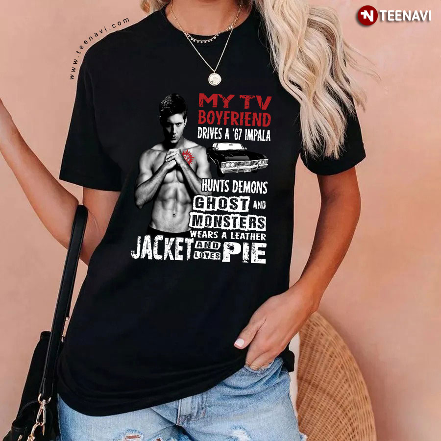 Details about the My Tv Boyfriend Drives A ’67 Impala Hunts Demons Ghost Monsters T-Shirt